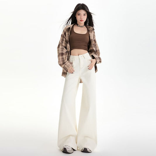 Leg High (Various Designs) Rise Washed Jeans Wide