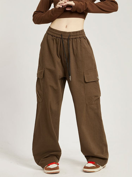 Low Rise Plain Pocket Loose-Fit Wide-Leg Sweatpants