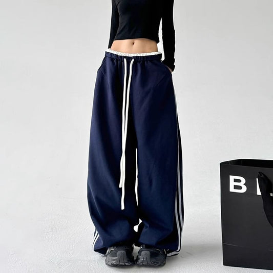 Low Waist Color-Block Loose-Fit Wide-Leg Sweatpants