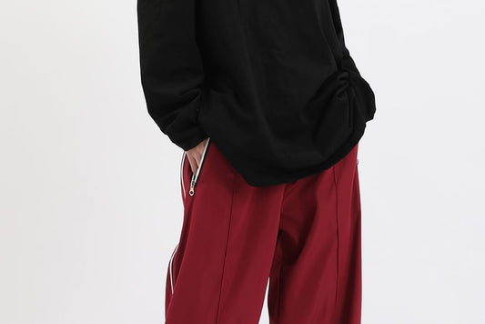 Low Waist Striped Zip-Up Loose-Fit Wide-Leg Sweatpants