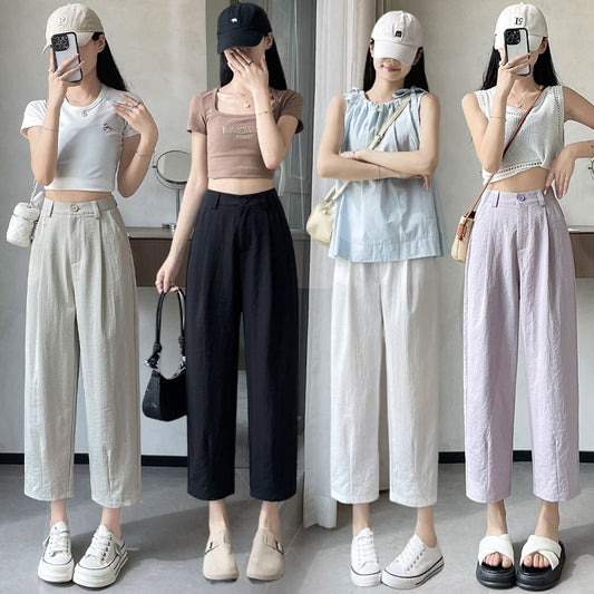 High Rise Plain Cropped Straight Leg Pants