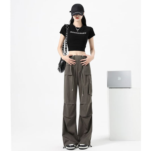 High Waist Drawstring Pocket Parachute Cargo Pants