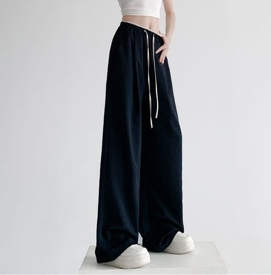 Panel Contrast High Rise Drawstring Wide Leg Pants
