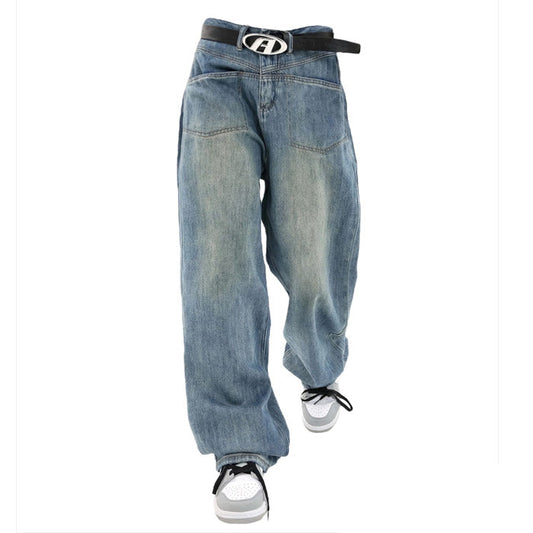 Y2K Style Denim Baggy Blue Bear Pants ON625