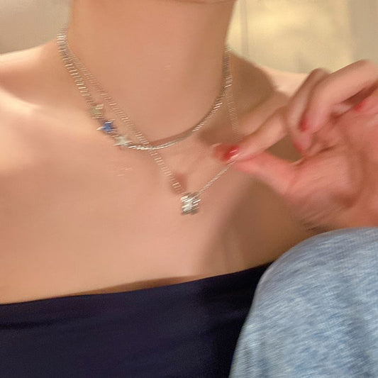 Pentagram Cross Pendant Black Triple Layered Necklace