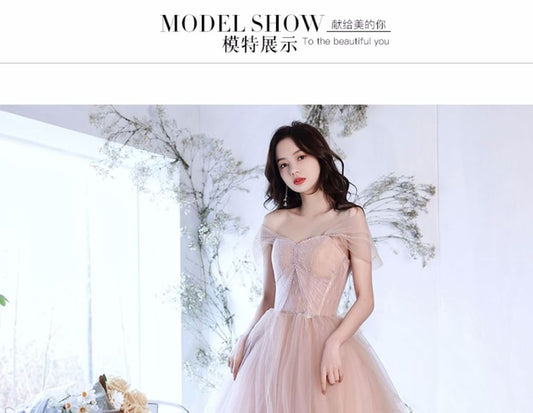 A-Line Gown Puff-Sleeve Off-Shoulder Bow Evening