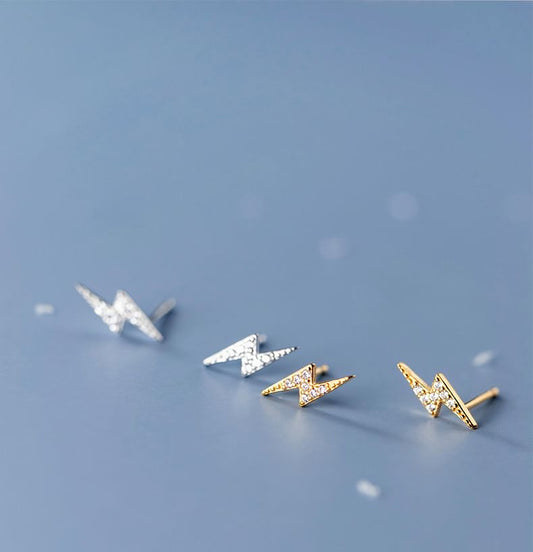 925 Sterling Silver Rhinestone Lightning Stud Earring