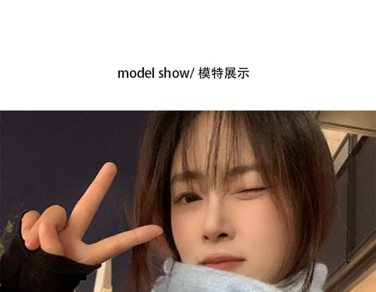 V-Neck Plain Fringed Button-Up Crop Cardigan / Long-Sleeve Lace Blouse