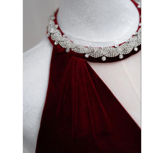 Halter Plain Rhinestone Fringe Velvet Mermaid Evening Gown