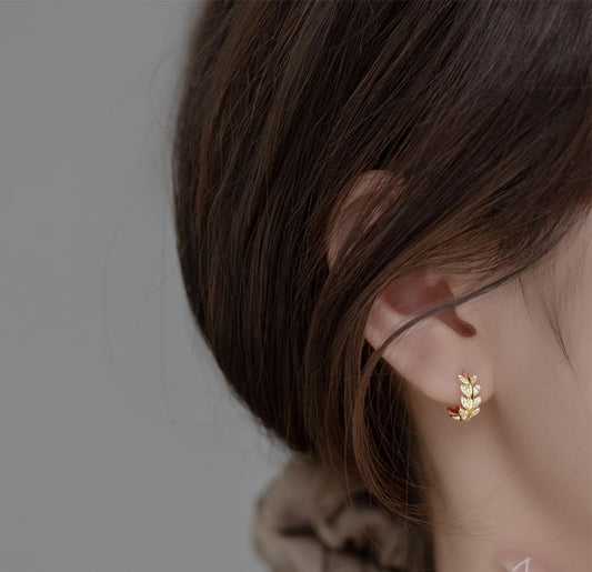 Sterling Silver Rhinestone Leaf Hoop Earring