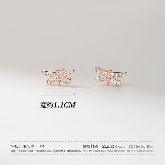 Sterling Silver Dragonfly Rhinestone Stud Earring