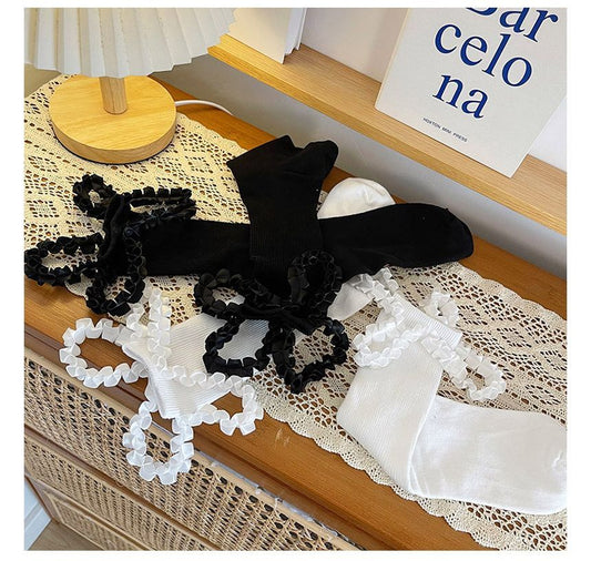 Plain Lettuce Edge Ribbed Cartoon Socks