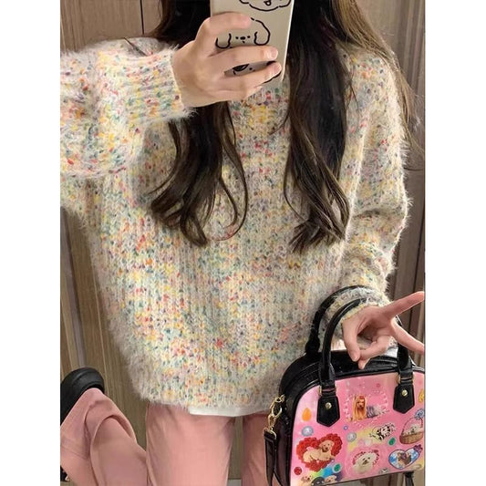 Round Neck Cold-Shoulder Plain Beaded Ruffle Trim Sweater