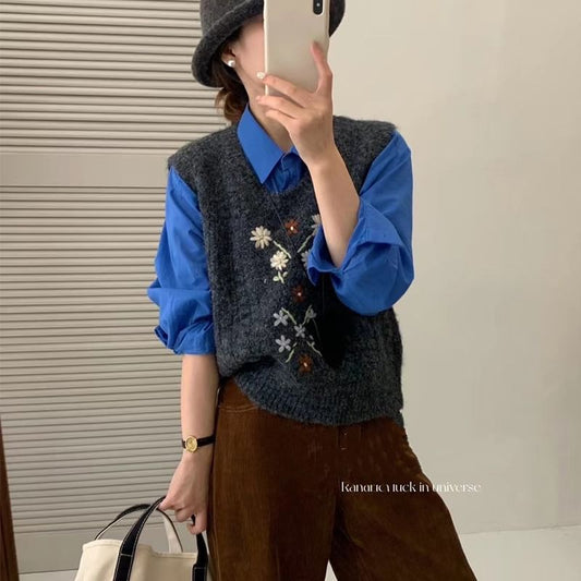 Set: Collared Striped Cable Knit Sweater + Mid Rise Mini Pencil Skirt