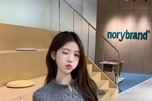 Henley Plain Sweater / High Rise Striped Mini Pencil Skirt