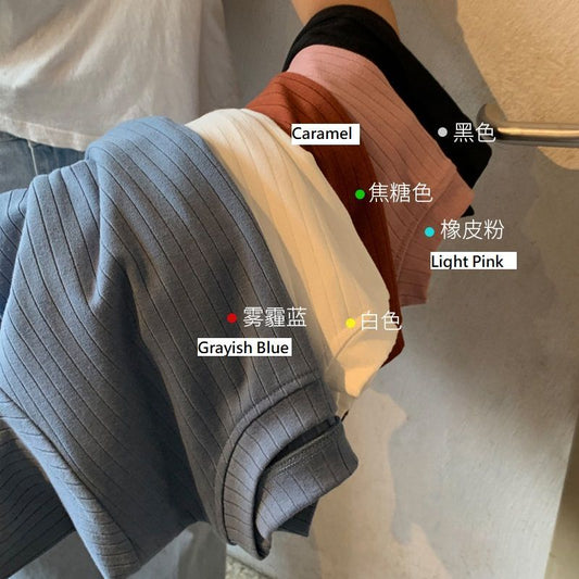 Short-Sleeve Square Neck Plain Ribbed Slim Fit T-Shirt