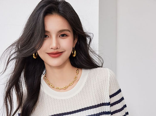 Long-Sleeve Scoop Neck Plain T-Shirt