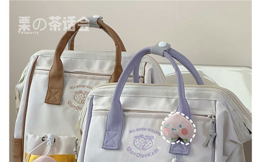 Strawberry Embroidered Top Handle Backpack
