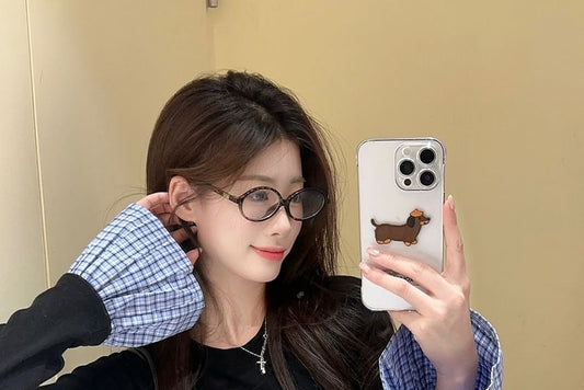 Mock Two-Piece Long-Sleeve Plaid Hem Top
