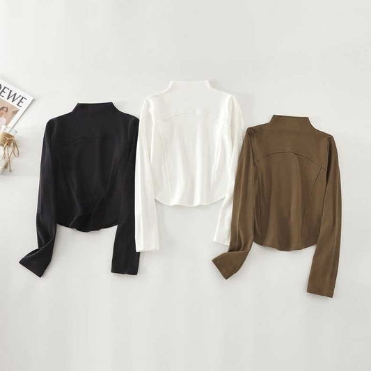 Long-Sleeve Mock Neck Plain Top