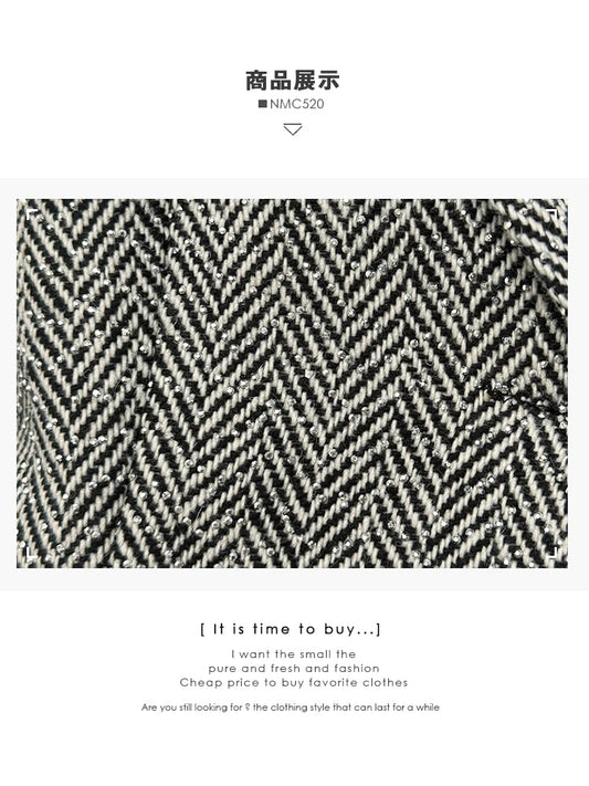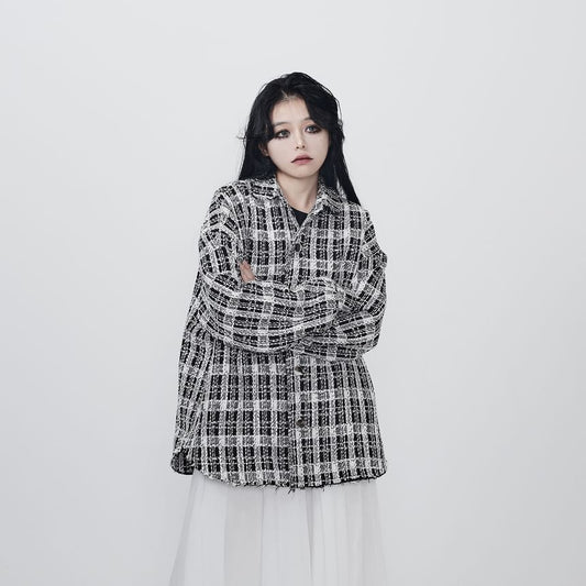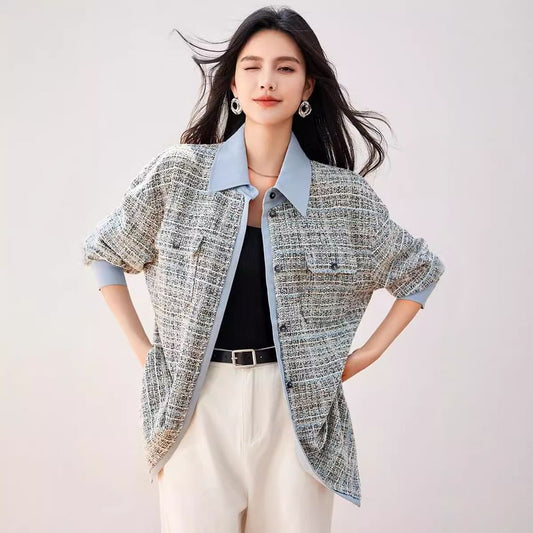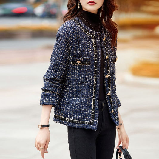 Lapel Collar Two Tone Button Cropped Tweed Jacket
