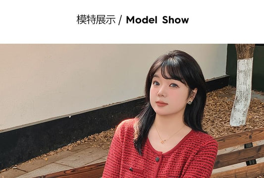 Round Neck Plain Tassel Trim Tweed Cropped Jacket