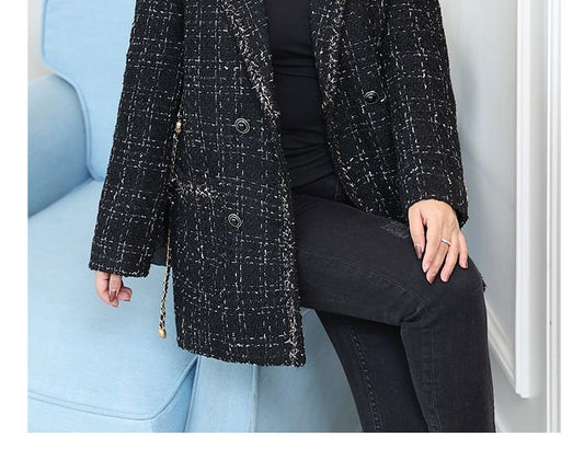 Notch Lapel Plaid Tweed Double-Breasted Blazer