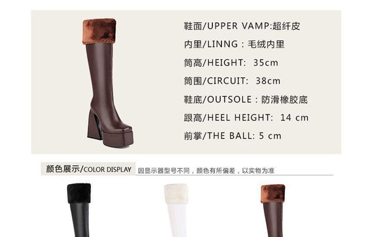 Platform Block Heel Square Toe Fleece Trim Tall Boots