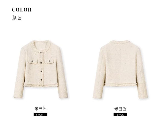 Round Neck Plain Fringed Button Jacket
