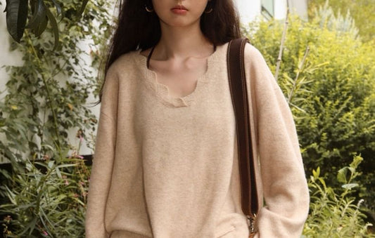 V-Neck Melange Drawstring Sweater
