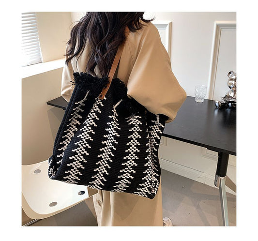 Tweed Embroidered Tote Bag