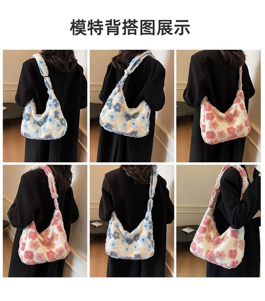 Floral Faux Shearling Tote Bag