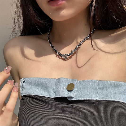 Rhinestone Alloy Yarn Choker Layered