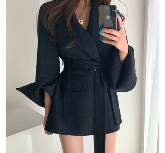 Panel Wood Ear Trim Puff-Sleeve Loose-Fit Shirt