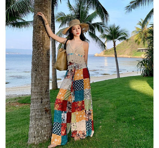 Mock Two-Piece Spaghetti Strap Plain Shirred Accordion Pleat Midi Sundress
