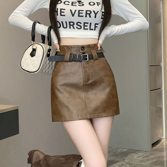 High Rise Plain Faux Suede Mini A-Line Skirt