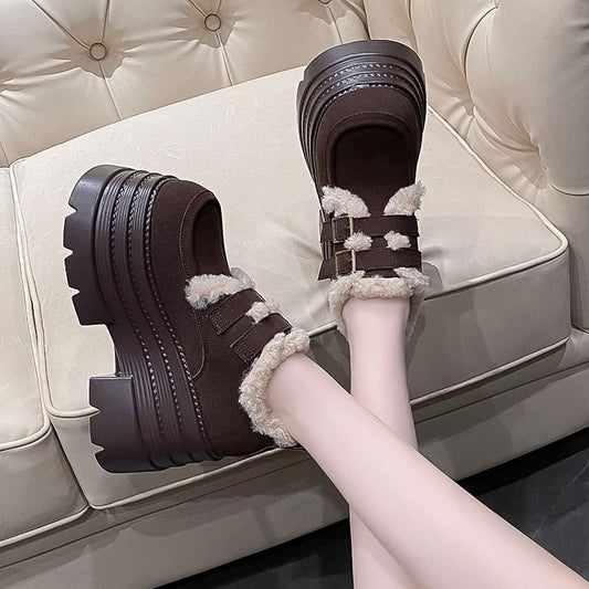 Fleece Lined Buckled Platform Ankle Snow Boots