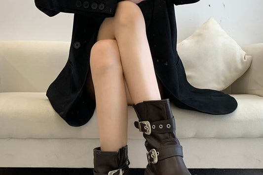 Plain Buckled Mid-Calf Boots