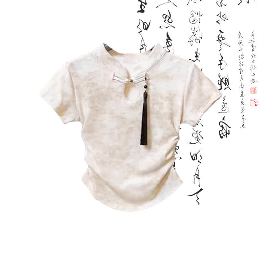 Vintage Buckle Tassel Shirt High Waist Lace-up Pleated Skirt