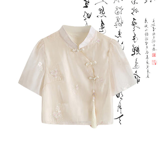 Vintage Buckle Tassel Embroidery Shirt High Waist Pleated Skirt