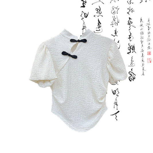 Vintage Black Bamboo Print Shirt Lace-up Pleated Skirt