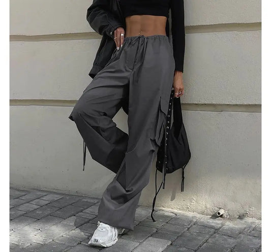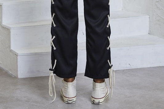 Pantalon de survêtement droit à lacets sur le côté taille haute ZJ8