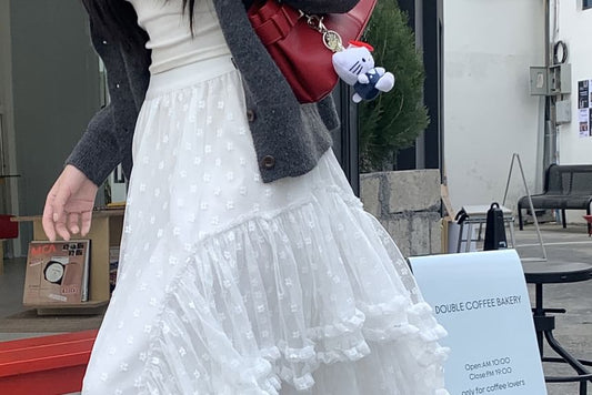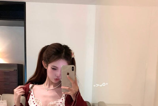 Cami Top Waist Lace Knit Plain Cardigan A-Line Ruffle / Trim Ribbed Skirt Bowknot Mini Mid