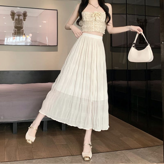 Plain A-Line High Skirt Asymmetrical Maxi Waist