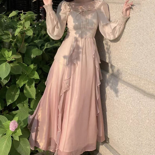 Pink Cross Knit Sweater Flouncing A-line Slip Dress Set