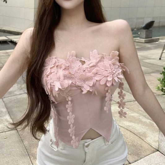 Jacket Camisole Top Plain Edge Trim Light Lace Lettuce / Bow