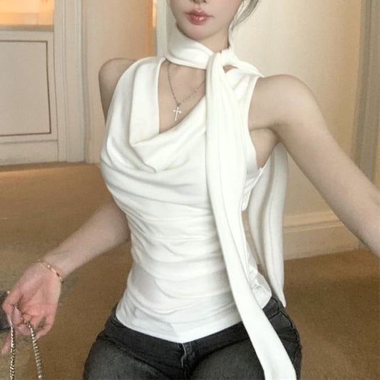 Scarf Tank Cowl Set: + Neck Plain Top Slim Fit