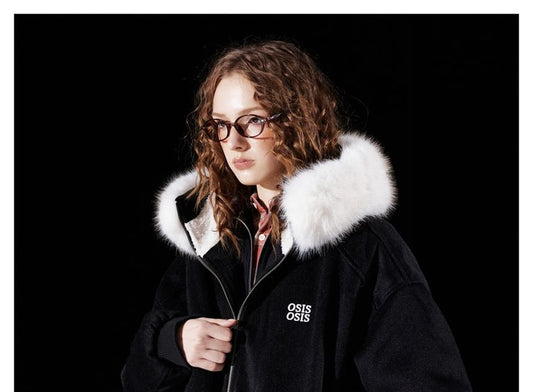 Detachable Faux Fur-Trim Hooded Wool Jacket