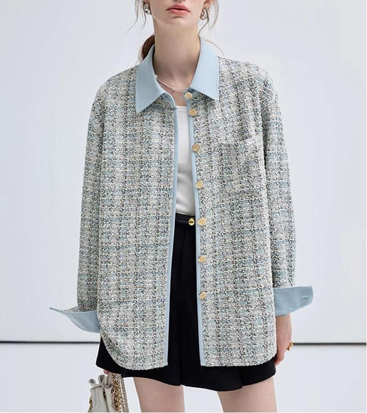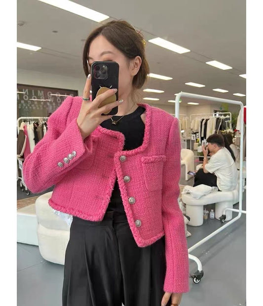 Square Neck Plain Tweed Single Breasted Jacket (Various Designs)