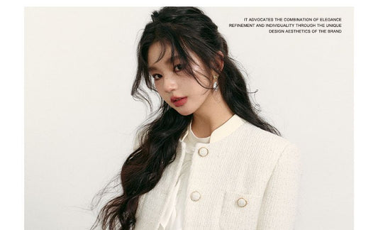 Stand Collar Tweed Contrast Trim Button-Up Jacket